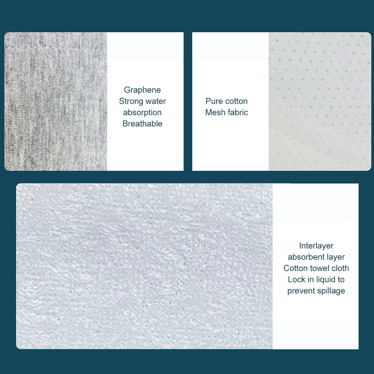 Mesh fabricInterlayerabsorbent layerCotton towel clothLock in liquid toprevent spillage