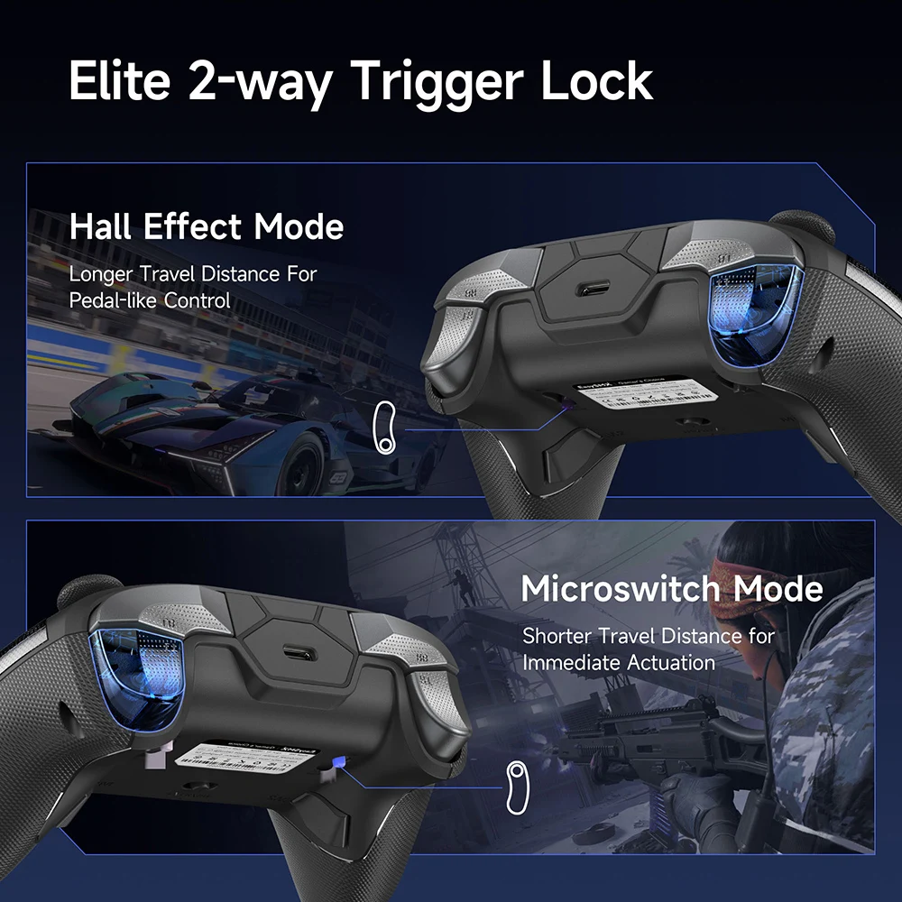 The innovative dual-mode trigger design supports both linear and tactile modes, allowing players to switch easily between racing and shooting games for optimal performance.