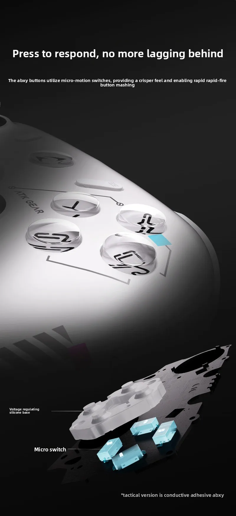 D-pad: 8-Direction Conductive Rubber (Replaceable Cross-shaped Cap)