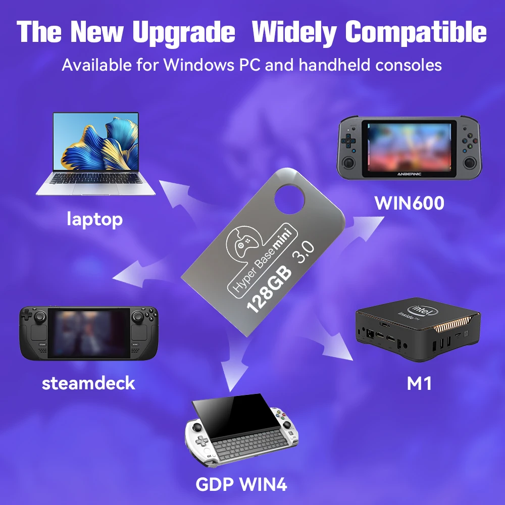 The upgraded retro game USB Flash Drive is not only suitable for Windows-based PCs, but also for Windows-based handheld game consoles, such as ROG ALLY, WIN600 and Steam Deck.