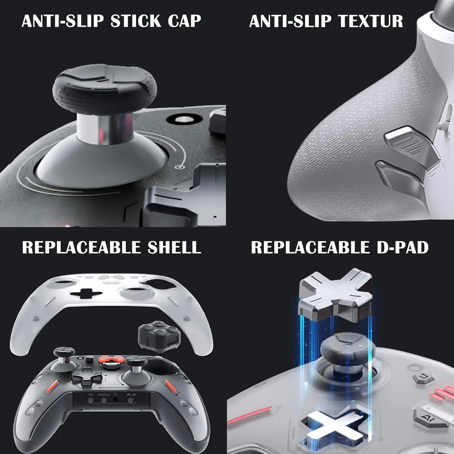 【Detachable Modular Components Gamer Define Owned Gamepad】1.AXBY keys:3 types of key modules 3 different pressing handfeels,Switch key layout of module replacebale 2.Anti-wear Joystick:3 height adjustable to meet different gaming requires 3.D-pad & Outer shell:Diamond D-pad take more gaming choice,magnetic face shell let your controller cross-dressing