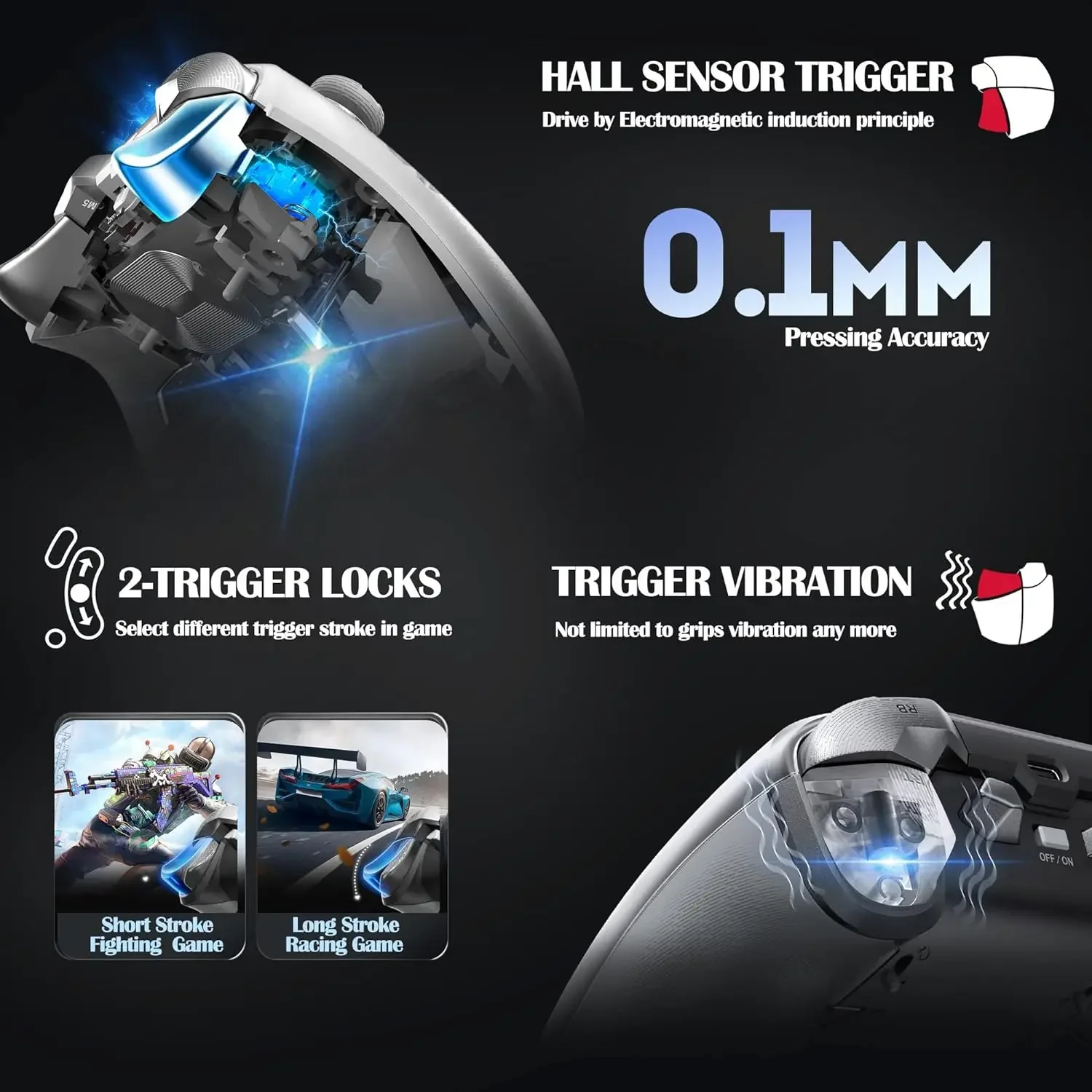 【Powerful Hall Trigger & Trigger Locks & Vibrate Trigger Game Controller】Trigger drive by Hall Electromagnetic Induction,pressing accuracy up to 0.01mm fast response. BEITONG R&D tech allows trigger to achieve a rich vibration effect that no longer limited to the grip.Trigger locks provide long and short stroke to select