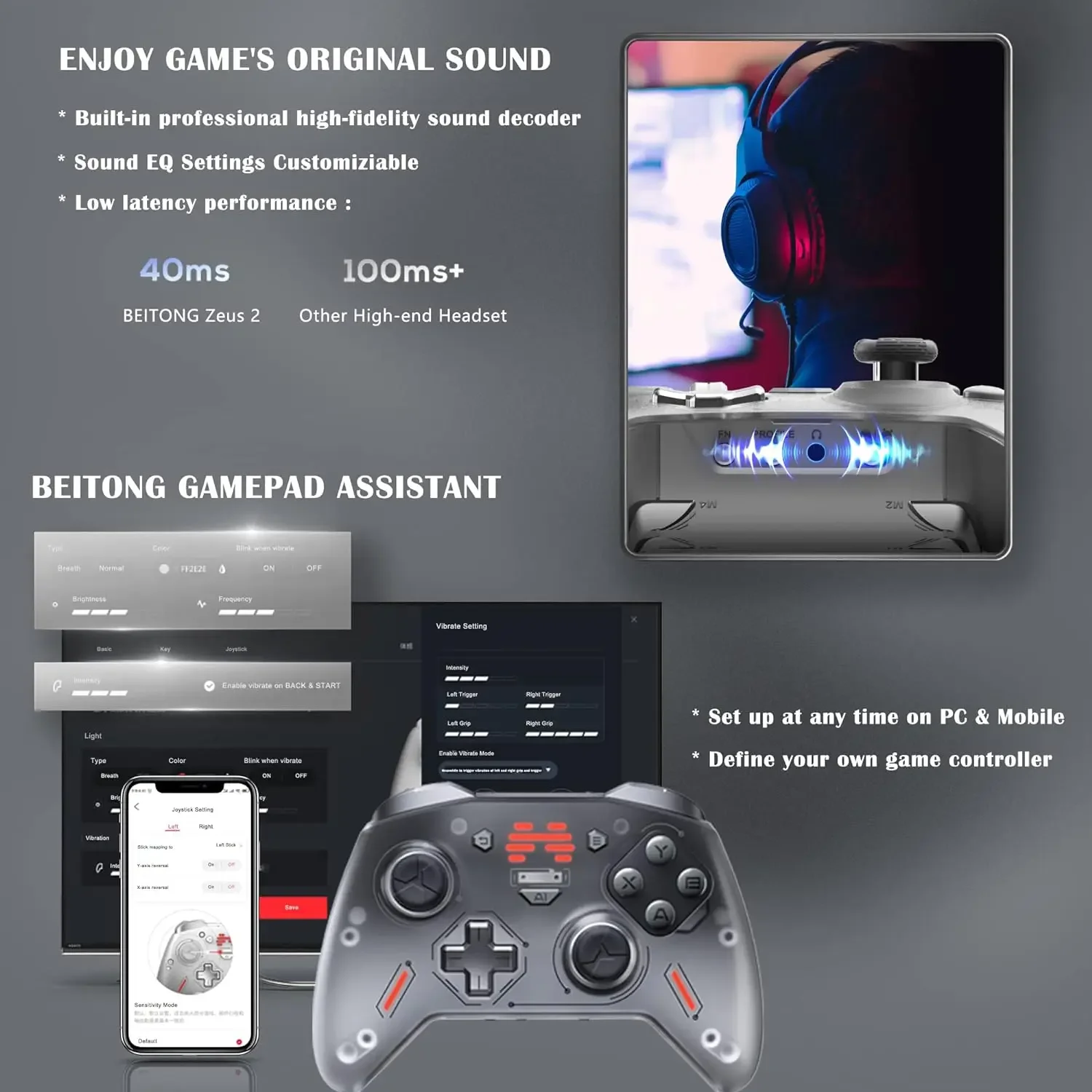 BEITONG Zeus 2 Optical Micro Switches Elite Game Controller For PC Switch Mobile Steam Gaming,1000 mAh/Motion Control/3 Joystick