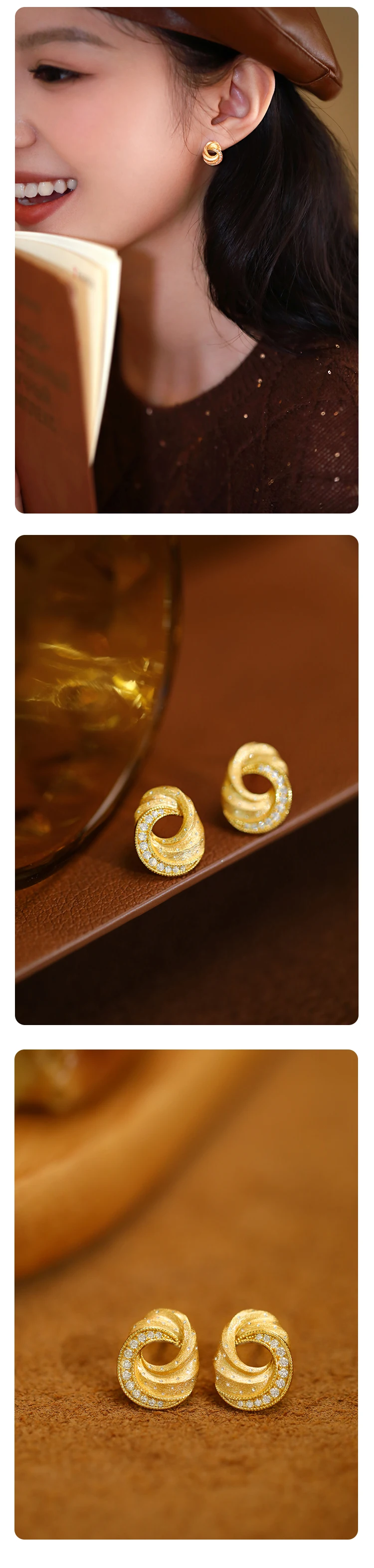 "Butter Cookies" Retro Court Niche High-end Italian Craftsmanship Nail Sand Sterling Silver Stud Earrings