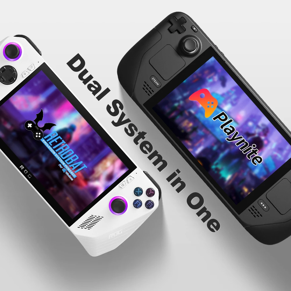 This game card has been configured with two powerful game front ends: Retrobat and Playnite dual systems