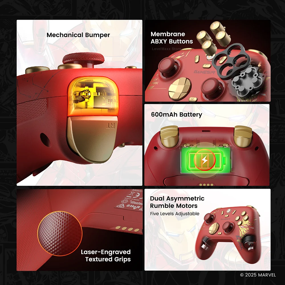 Meet the ultimate GameSir Nova 2 Lite wireless game controller, featuring a mechanical circular D-pad specially tuned by fighting game champion XiaoHai. With ultra-low button and stick latency and a 1000Hz polling rate, you’ll enjoy smooth, responsive, and lag-free gameplay. Whether you're just starting out or looking to level up, the Nova 2 Lite is the perfect entry-level choice, combining precision, performance, and accessibility in one sleek package. Now available in the Iron Man Limited Edition, officially licensed by Marvel. Featuring a striking red-and-gold color scheme and Iron Man artwork, it reflects his iconic spirit.