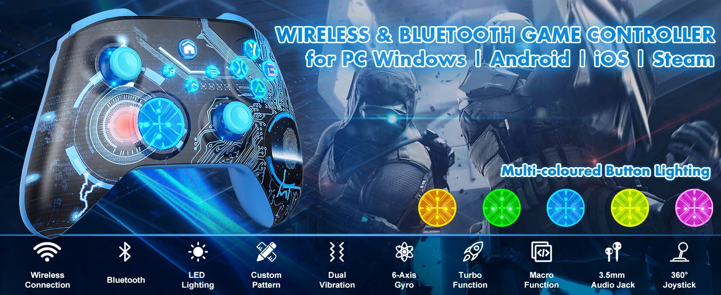 GAMROMBO Game Controller for XBox One S/X/Series S/X/PC/Steam Wireless Gamepad Vibration Gaming Joystick 6-Axis Gyro Turbo Funcs
