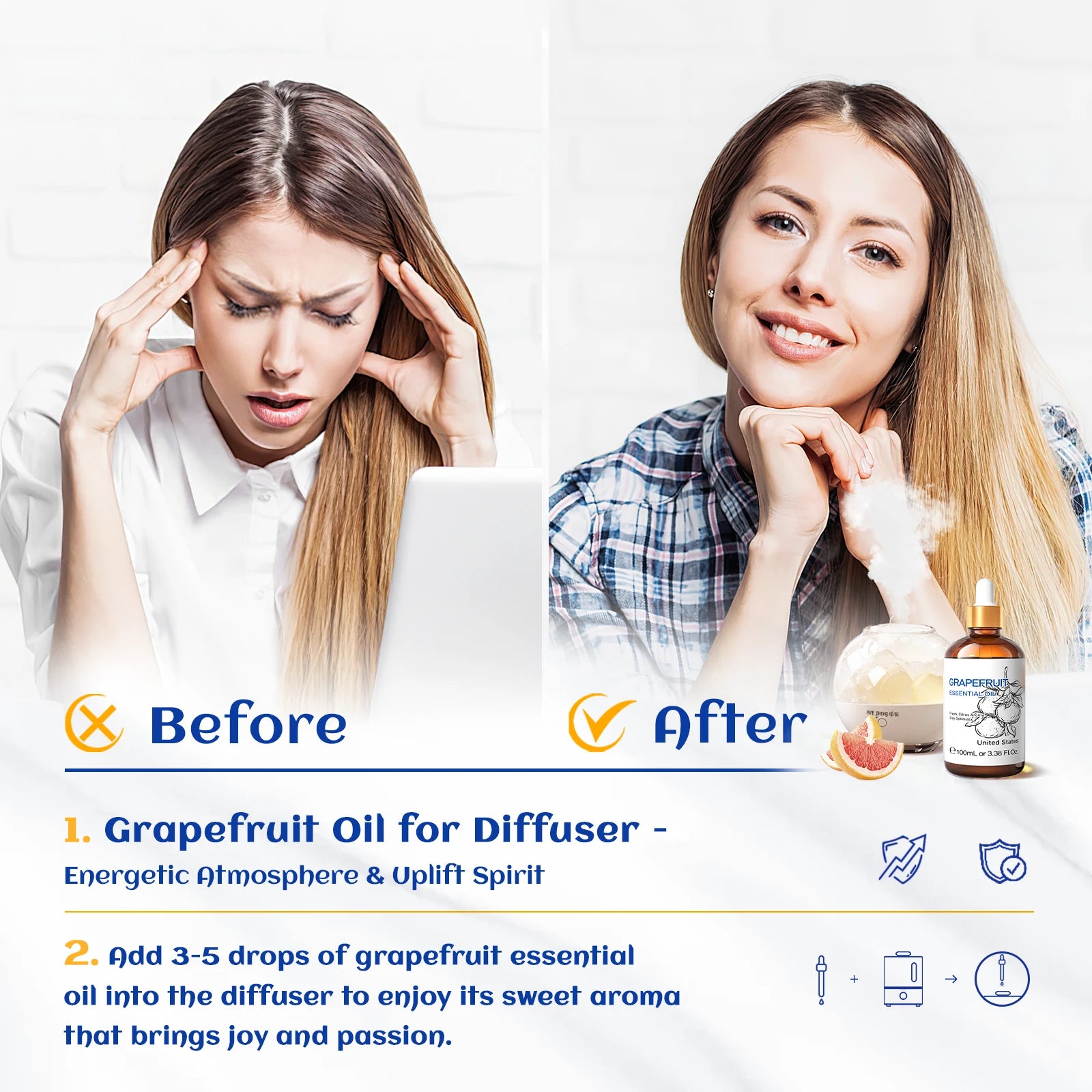 Pure Grapefruit Essential Oil 100ml for DIY Aromas Humidificador Massage Face Skin Sweet Orange Lemongrass