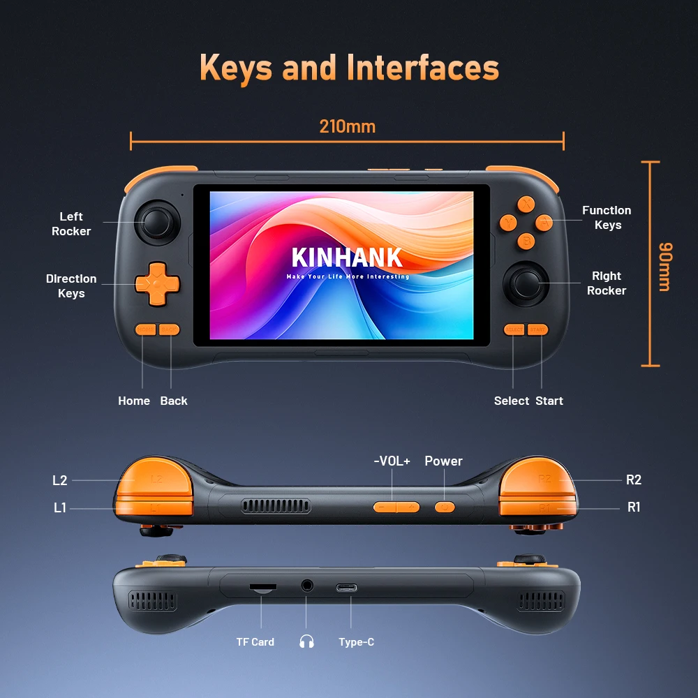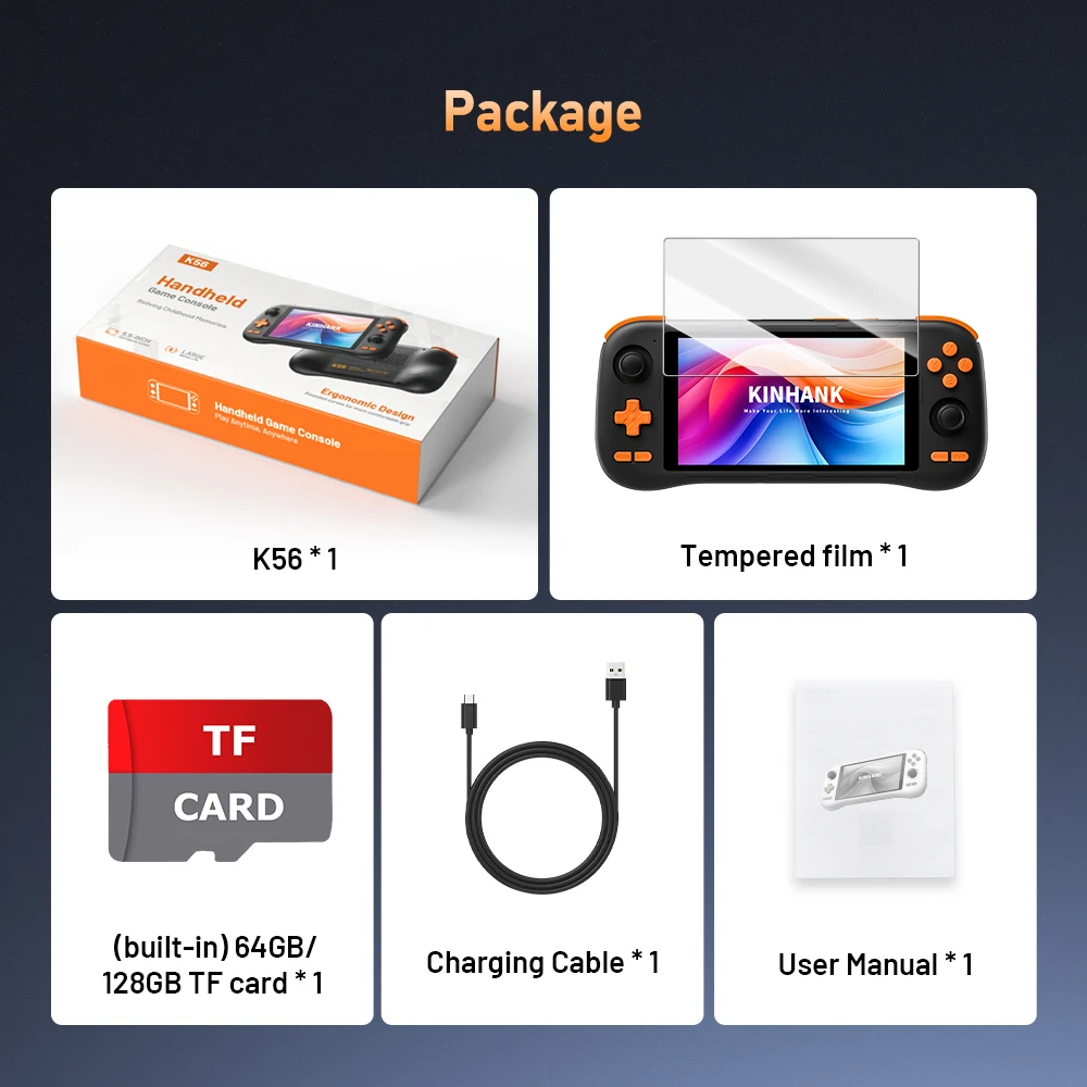 KINHANK K56 Handheld Game Console 5.5'' Touch Screen 50 Emulators for PS1/PSP/DC/SS Android 14 5000mAh WIFI5 Retro Game Player