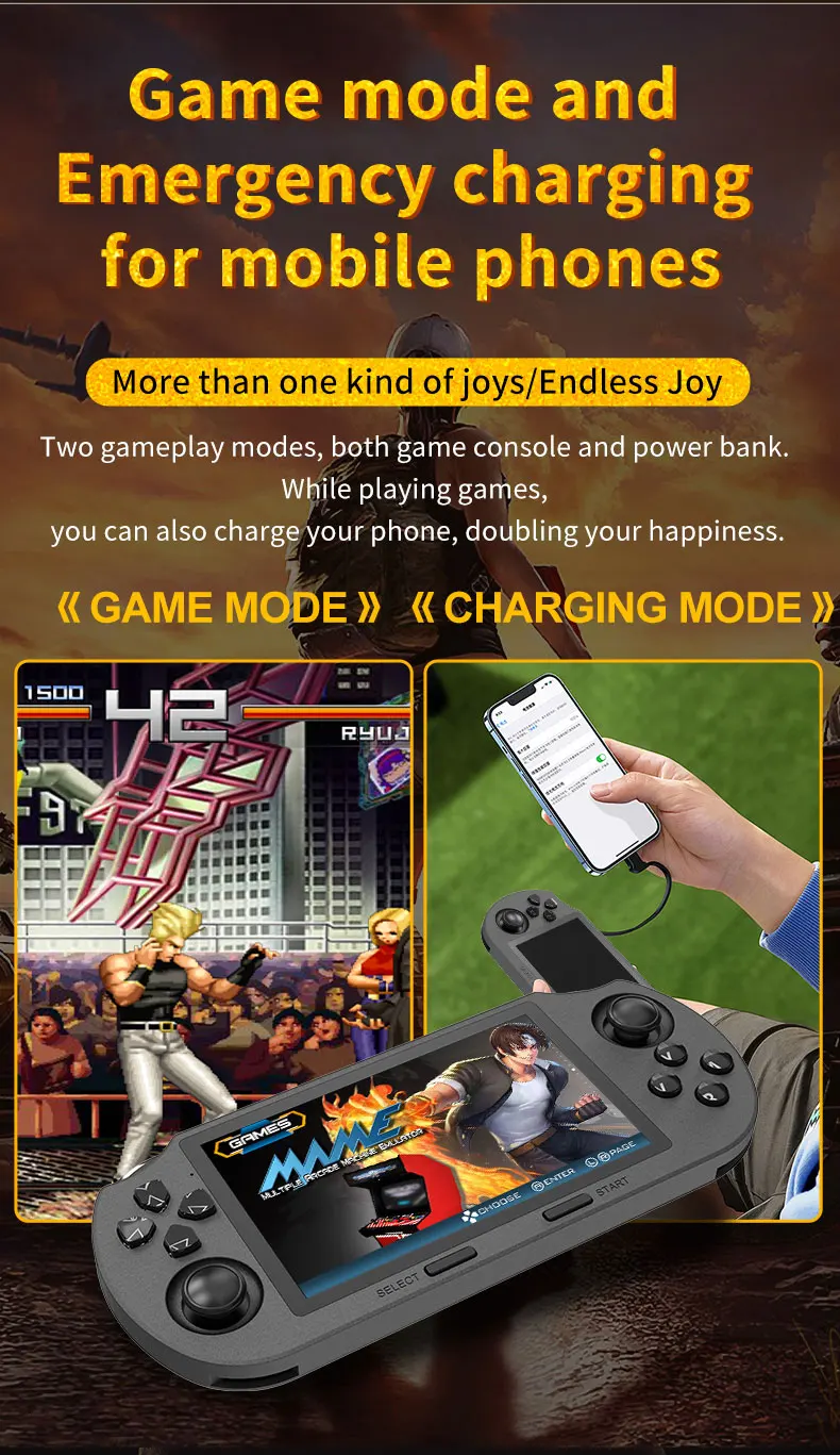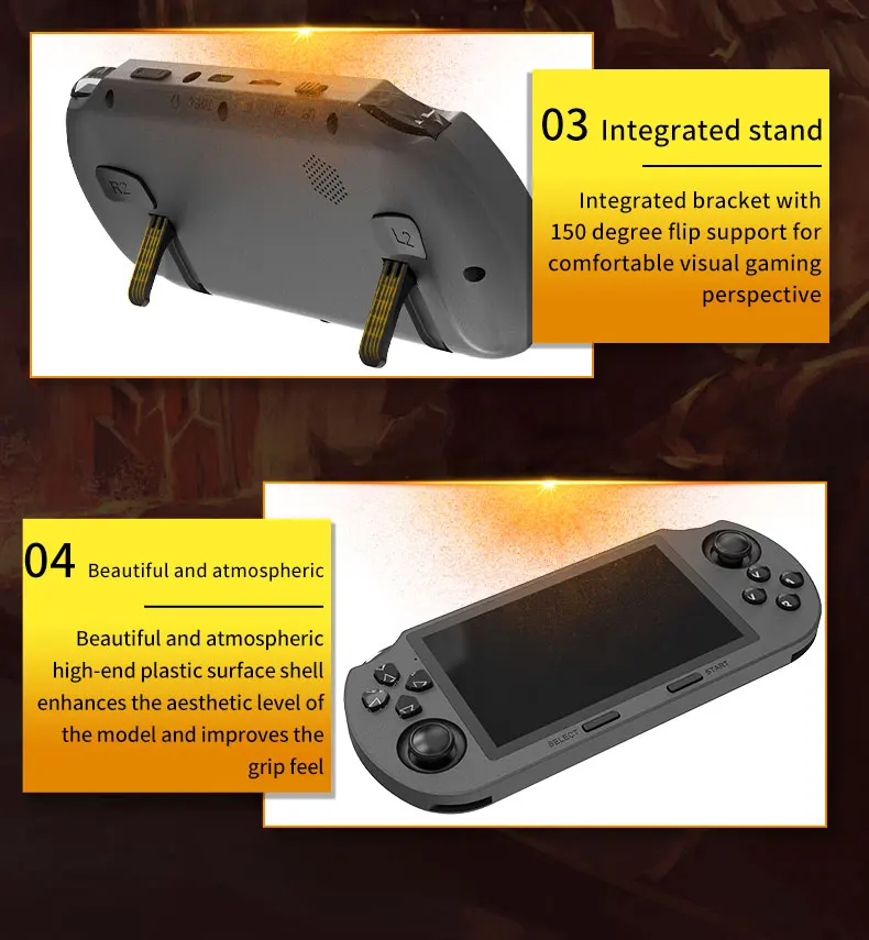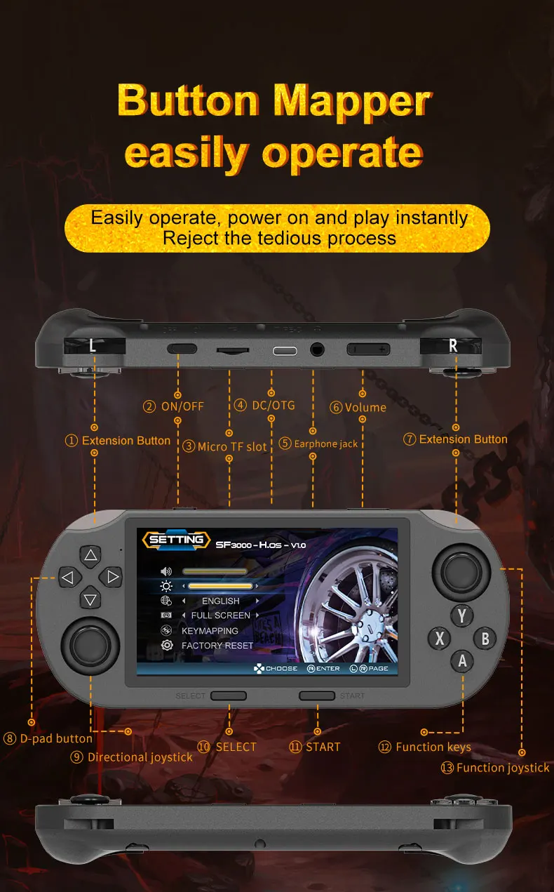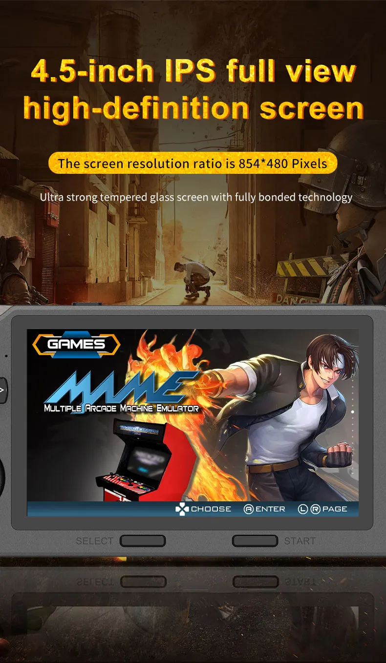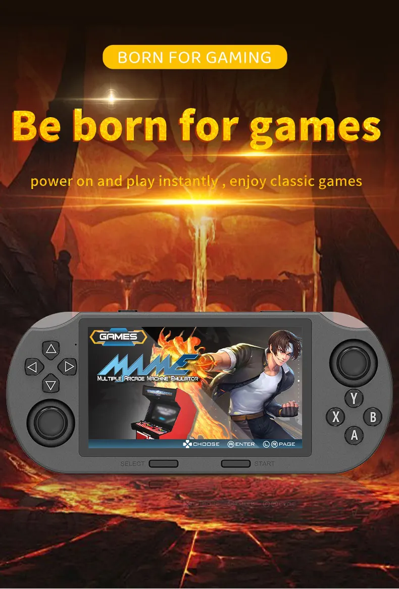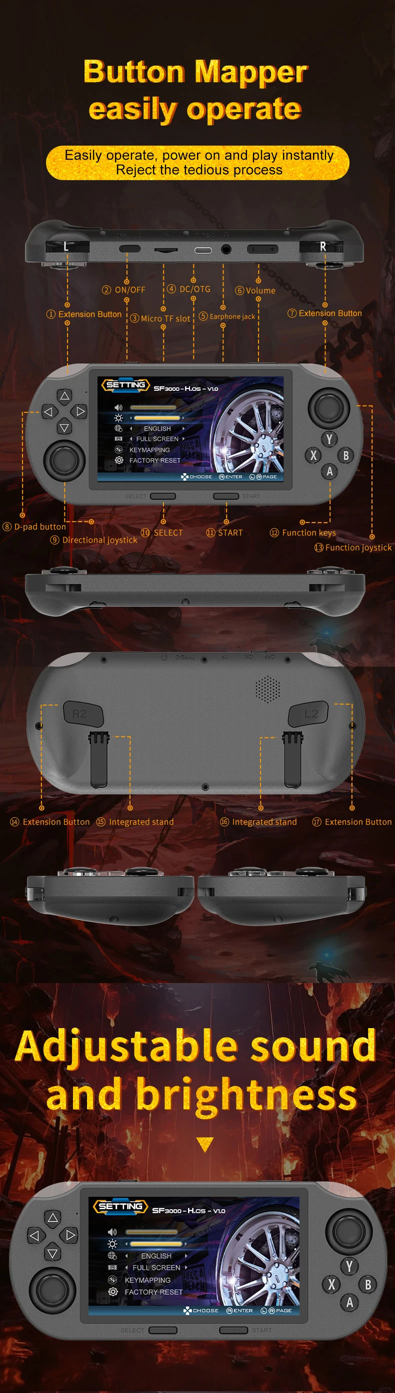 SF3000 handheld game console with a 4.5-inch large screen, supporting e-books, MP4, Music function, built-in 20000+games