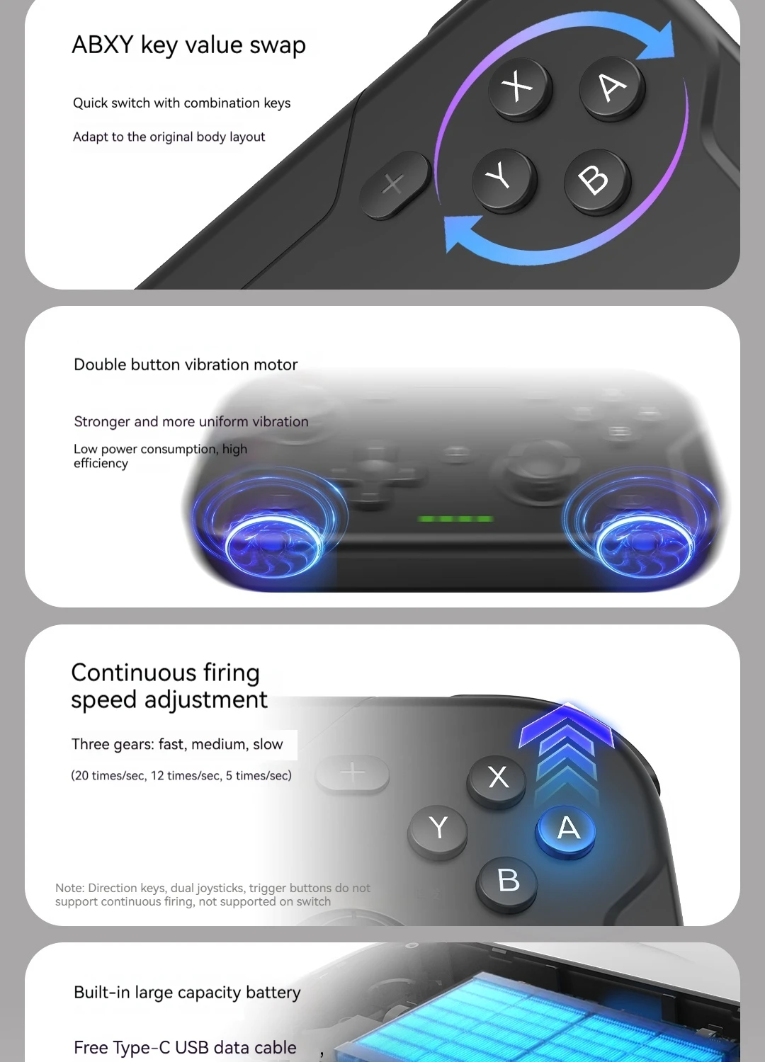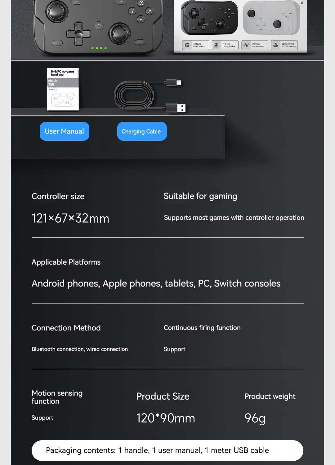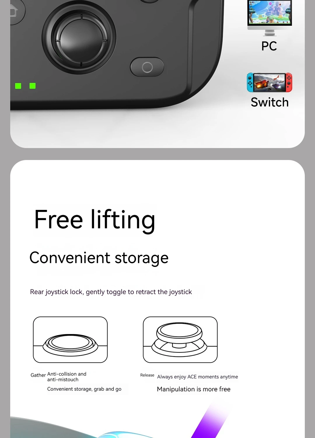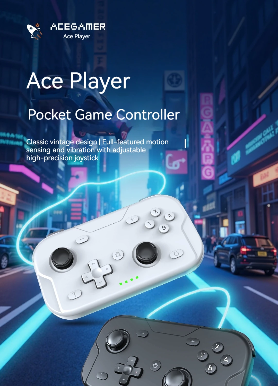ACEGAMER Game Controller Wireless Bluetooth Gaming Controller Vibration Motor Gyroscope Portable Mini Grip for Switch Computer