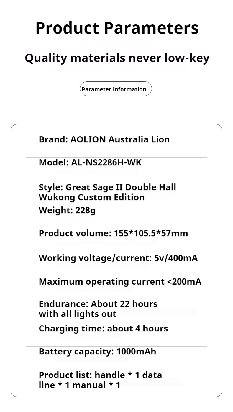 Product Color: Double Hall Wukong Limited Edition,Monster Hunter Custom Edition