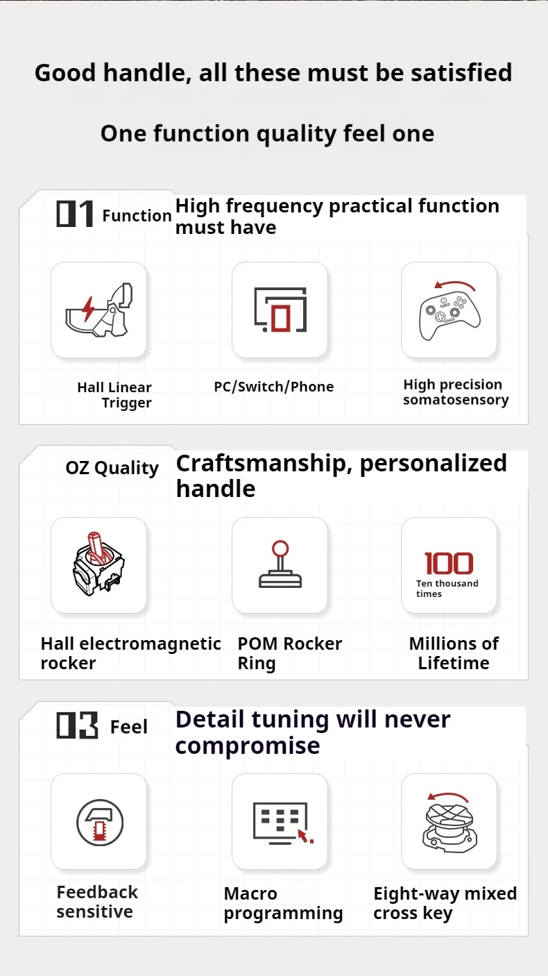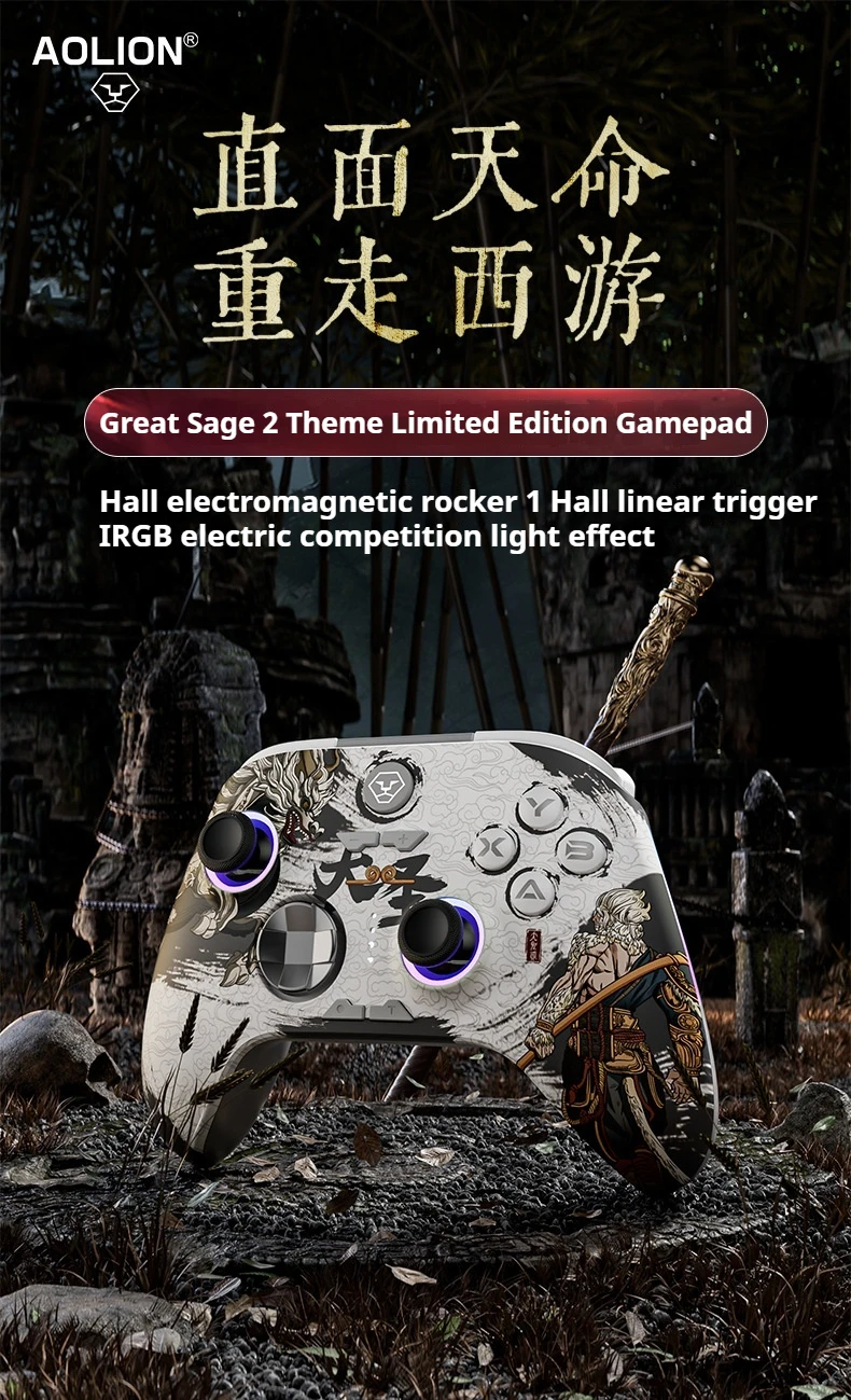 Aolion Wireless Game Controller Hall Linear Trigger Electromagnetic Joystick Rgb Light Effect Long Battery Life Pc/Switch/Steam