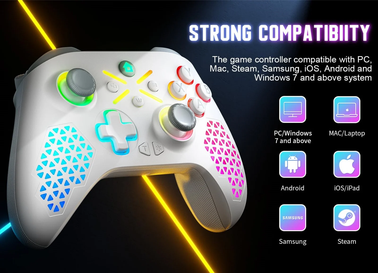 【Customizable RGB Lighting】Set up an amazing - looking gaming environment with lights you can customize. There are multi - zone, breathing, and solid light modes. You can pick from 7 bright colors to match your gaming style.