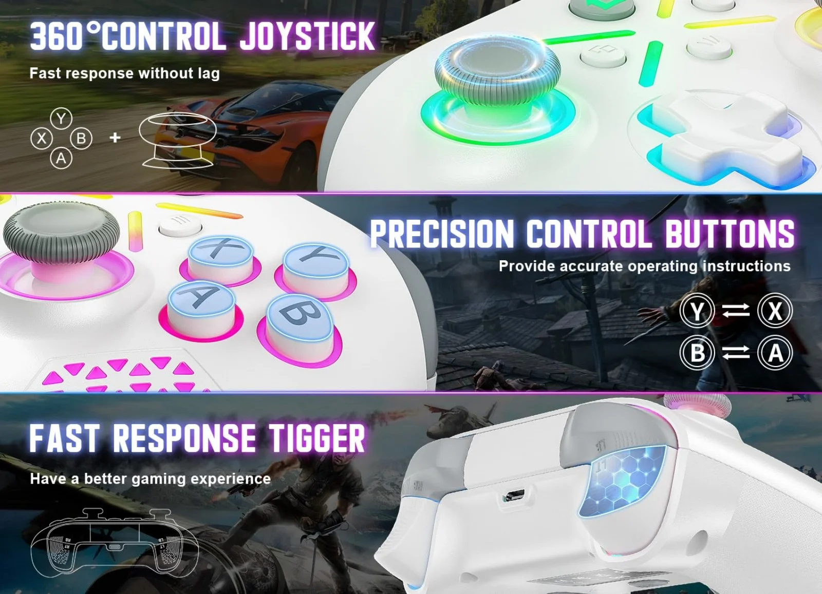 【Programmable MACRO & Turbo】The controller has 2 back - mappable buttons. You can map up to 16 buttons to the PR/PL key. One click can trigger an ultimate skill. Turbo Performance: Get an edge with turbo for rapid - fire action and quick responses.