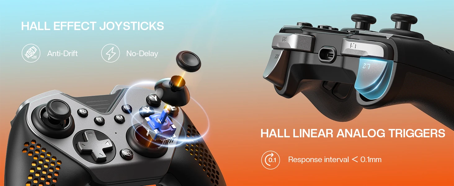 Hall Effect Sensing Joysticks - Offers anti-drift performance and exceptional durability